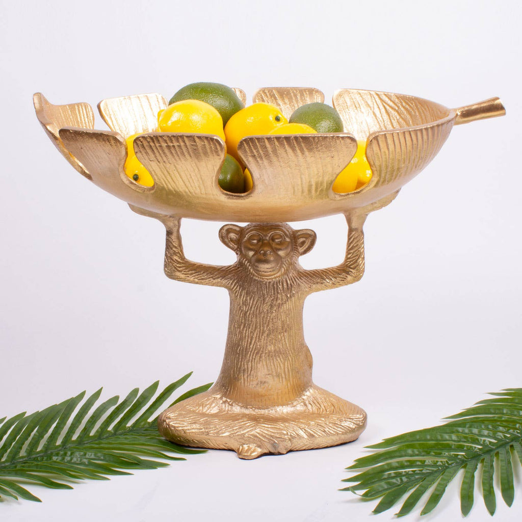 Add a little luxury to your home with our elegant Gold Monkey Decorative Bowl. Stylish and eye-catching, this decorative bowl is sure to be the center of attention anywhere it's placed. Expertly crafted from aluminum with a chic gold finish, the bowl is designed in the USA and imported for great quality. Measuring 16" x 11" x 13.5", this timeless piece will brighten up any area, making it look more polished and inviting. Spot clean only to keep its beautiful luster. Instantly elevate your living space by placing this Gold Monkey Decorative Bowl as the centerpiece on an entrance console table, dining table, bookshelf, or end table!