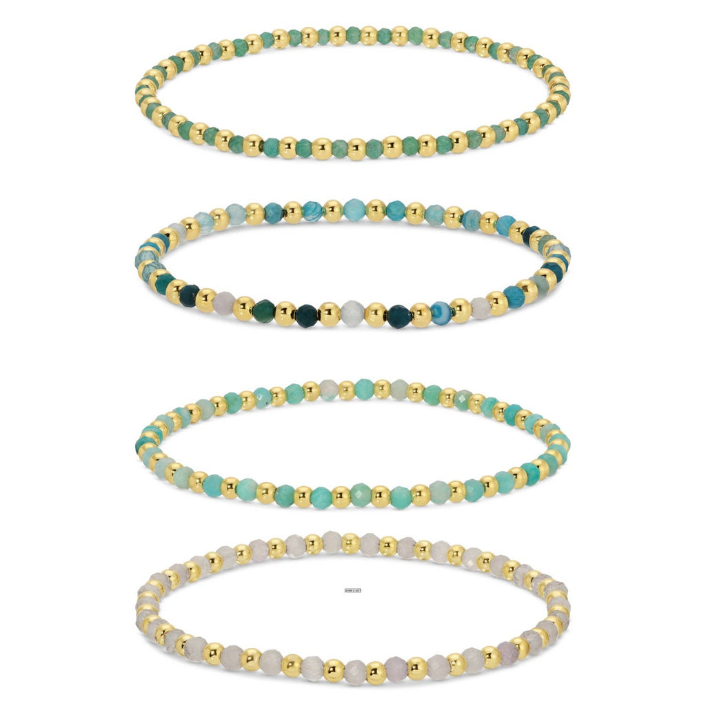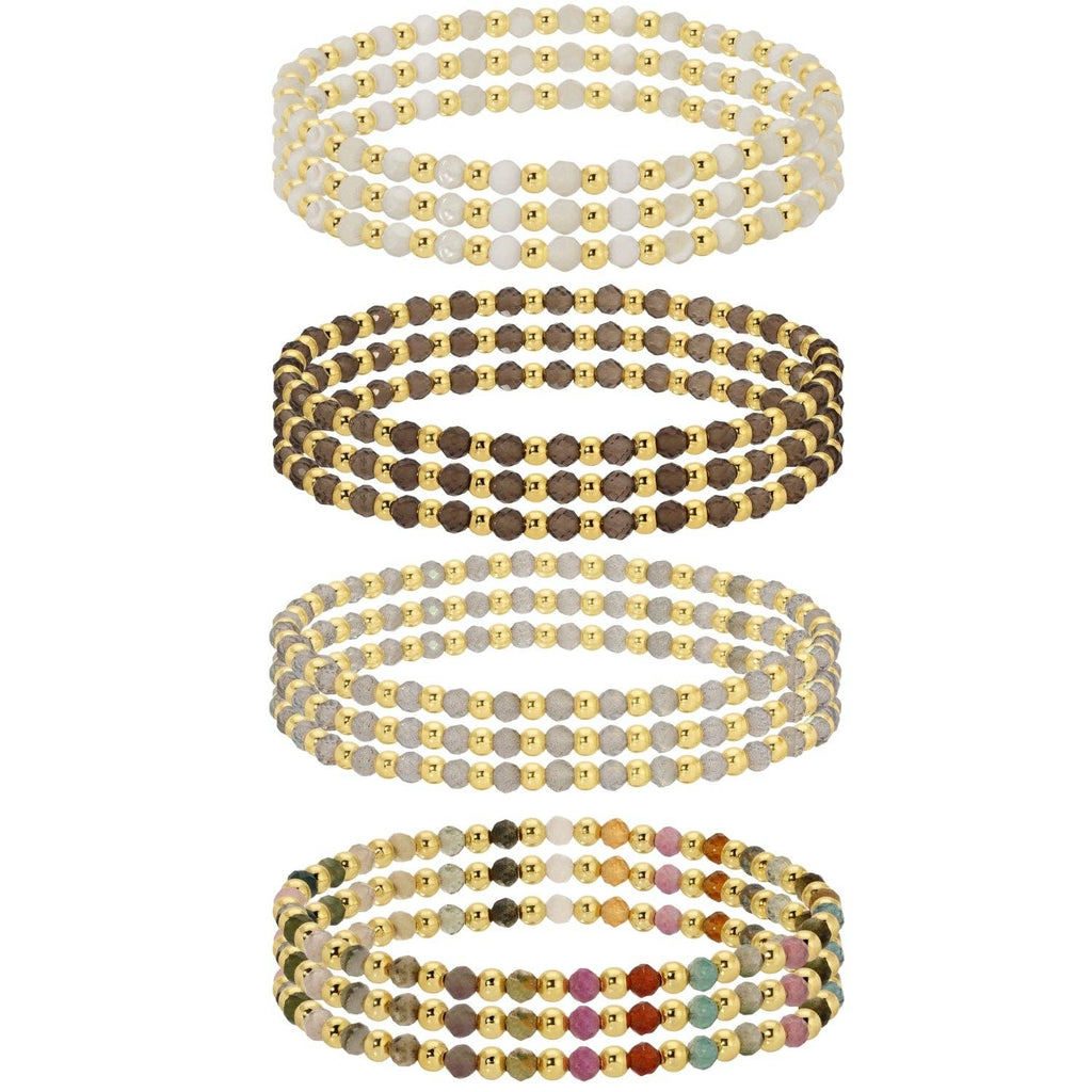 3mm Assorted Beaded Bracelets w/ Alternating Stones