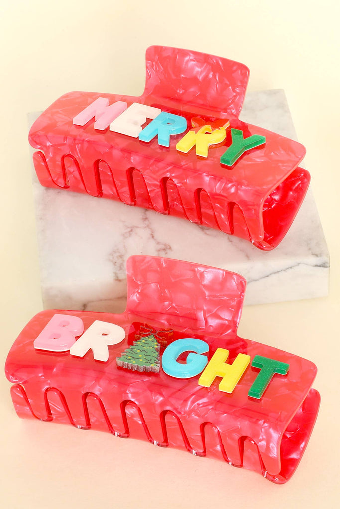 This Christmas Jeweled Merry Bright Hair Claw Clip adds a festive touch to any holiday hairstyle. Made with high-quality, sparkling jewels, it is both stylish and durable. Easily clip it in for a secure hold and a touch of holiday cheer.