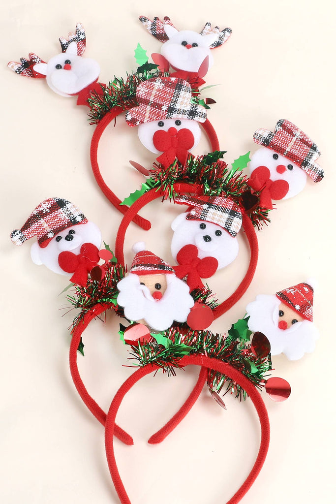 REINDEER RUDOLPH SNOWMAN FROSTY BEAR SANTA CLAUS TARTAN PLAID MERRY CHRISTMAS TINSEL XMAS SEASONAL GREETINGS HOLIDAY SEASONAL WINTER DECEMBER CHRISTMAS PARTY FESTIVE HEADBANDS CHRISTMAS DECORATIVE HAIR ACCESSORIES CHRISTMAS HEADPIECE