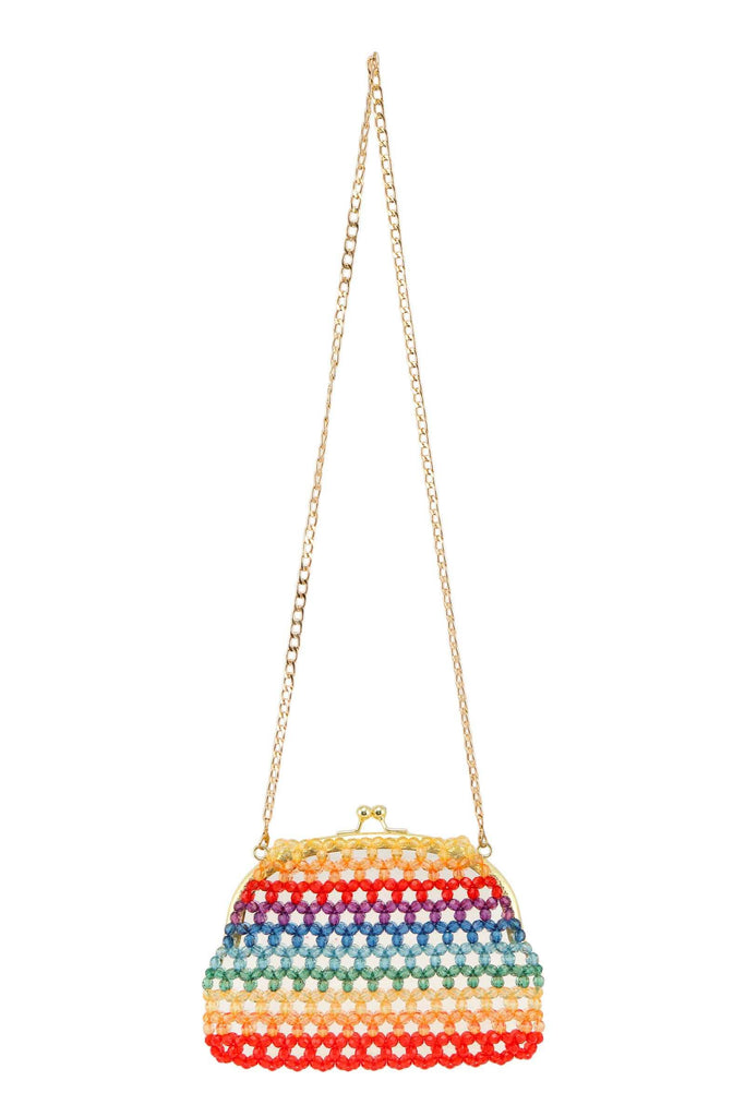 Immerse yourself in the vibrant world of ANB Fashion with our Colorful Bead Bag 001. This eye-catching crossbody bag measures 9"(L) x 1.5"(W) x 6.5"(H), making it the perfect accessory for women who love to stand out.